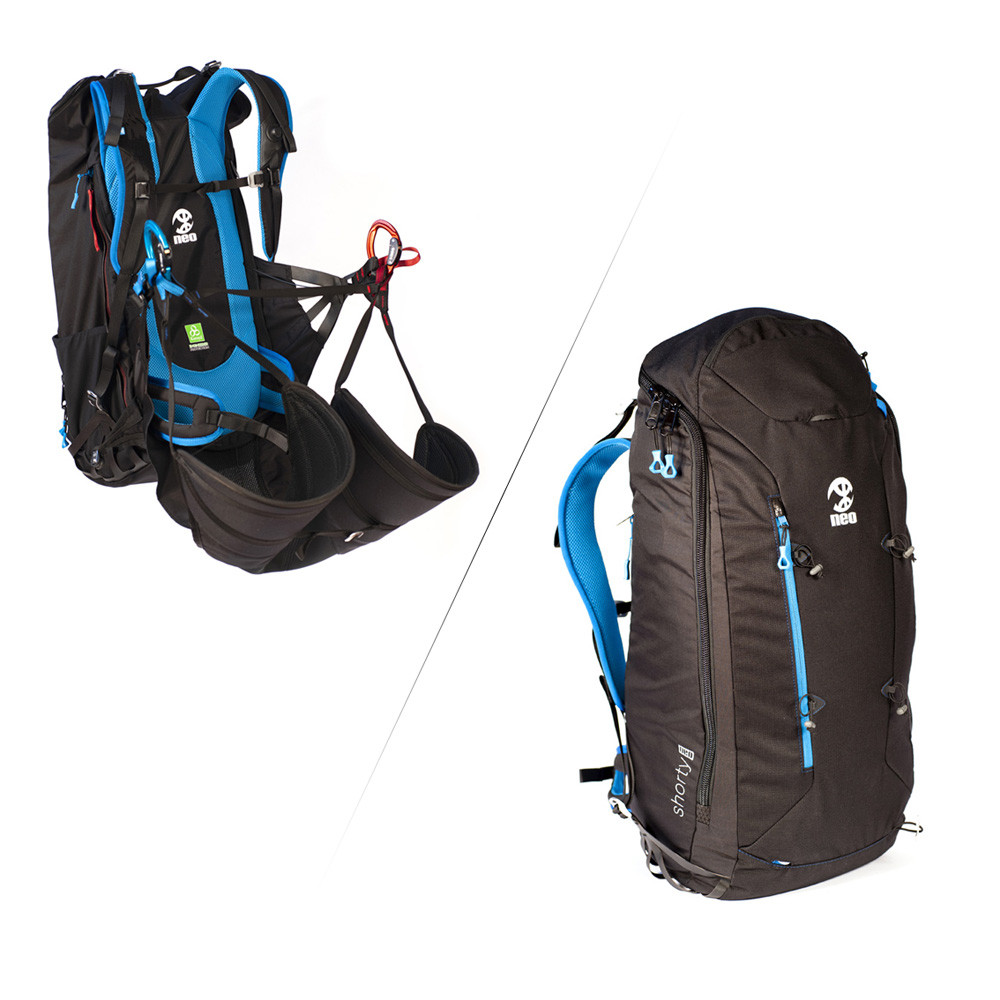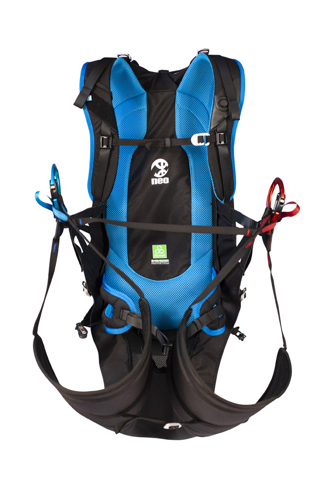Sac/sellette au concept très original et exclusif NEO qui permet une meilleure intégration du sac en vol, un gain de poids et un meilleur portage.