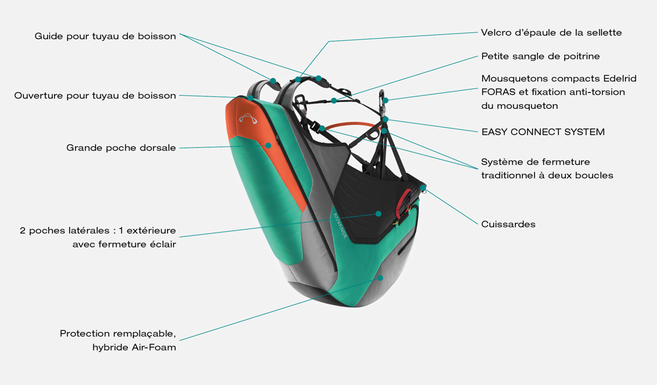 La PROGRESS 3 offre une polyvalence maximale sous forme compacte. Qu’il s’agisse de voyages, de vols thermiques, de courts Hike & Fly, de manœuvres de freestyle ou de la formation: avec la PROGRESS 3, les pilotes sont parfaitement équipés pour tout ce qu’ils veulent entreprendre. Cette sellette réversible et pratique est dotée d’un protecteur hybride Air-Foam et offre ainsi une protection intégrale dès le départ. Les méthodes 3D utilisées lors du développement garantissent un confort maximal en vol et lors du transport, ainsi qu’une silhouette parfaitement nette.