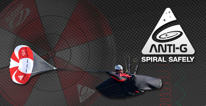 Une fois l’Anti-G déployé en vol normal, vous ne ressentirez pas de perturbation significative ou de lacet sur votre sellette à vitesse “bras hauts”*. Vous pouvez descendre en spirale et atterrir normalement avec le parachute déployé.