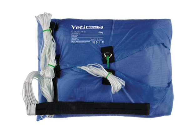 Le parachute de secours GIN Yeti est - comme ses concurrents - ultra-light et ultra-compact, mais il offre 40% de surface supplémentaire.