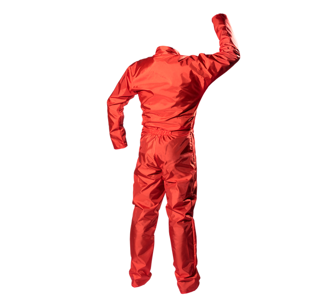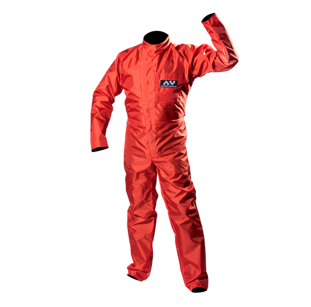 Combinaison de spéléologie épurée, en Nylon Orange souple et résistant.
