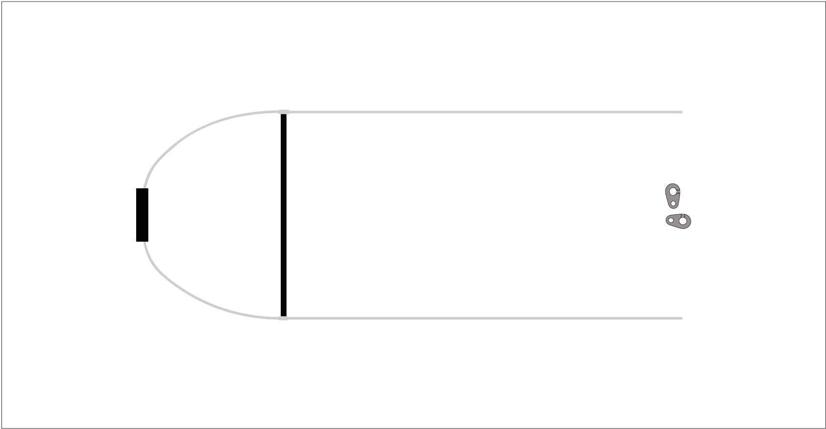Le premier barreau est équipé d’une cale de centrage amovible qui permet d’attraper l’accélérateur avec un pieds et de donner une premiere course sur le débatement d’accélération de la voile.
